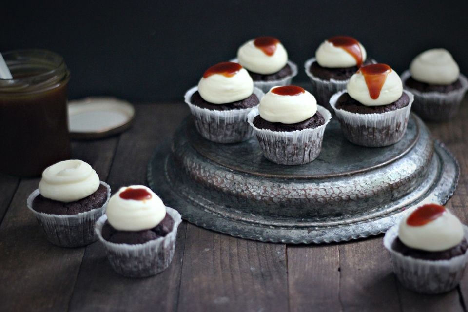 CHOKOLADE CUPCAKES MED SALT KARAMEL OG CREAM CHEESE FROSTING